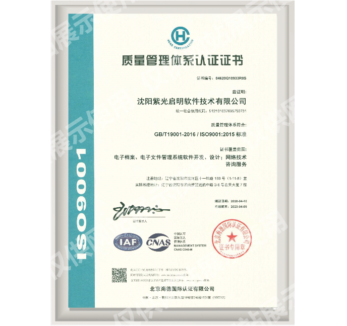 质量管理体系认证证书